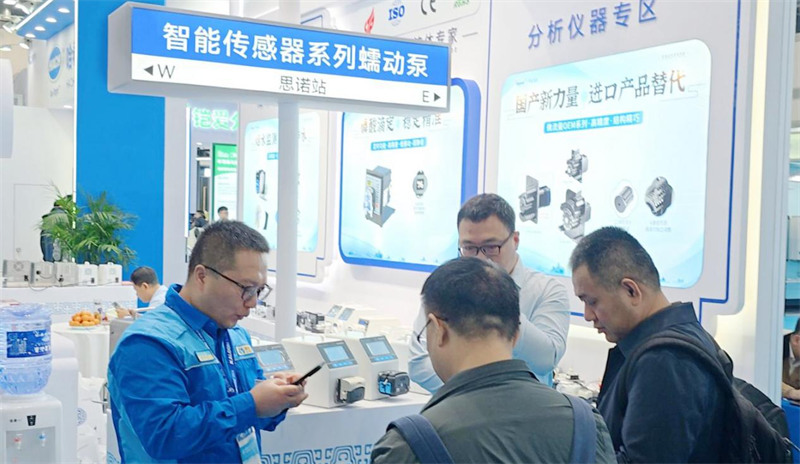 作為一家專注于蠕動泵研發、生產和銷售的高新技術企業,在本次展覽會上,思諾展示了新推出的智能傳感器系列蠕動泵產品,吸引了眾多參觀者的關注和咨詢。