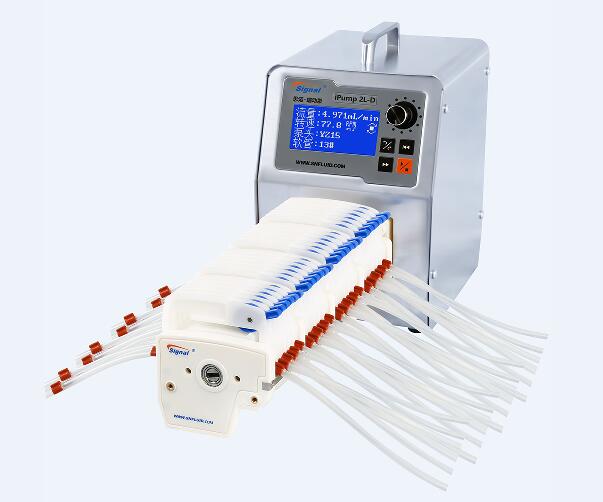 多管蠕動(dòng)泵泵頭適用于微小流量多通道同步液體傳輸環(huán)境,參考流量在水的前提下是75.12毫升每分鐘。DG泵頭滾論數(shù)分為兩種,6滾輪和10滾輪,前者流量大一些,后者相對(duì)流量小,精度高,脈沖小一些。經(jīng)常會(huì)在常規(guī)調(diào)速型蠕動(dòng)泵上面看到這款泵頭的身影。