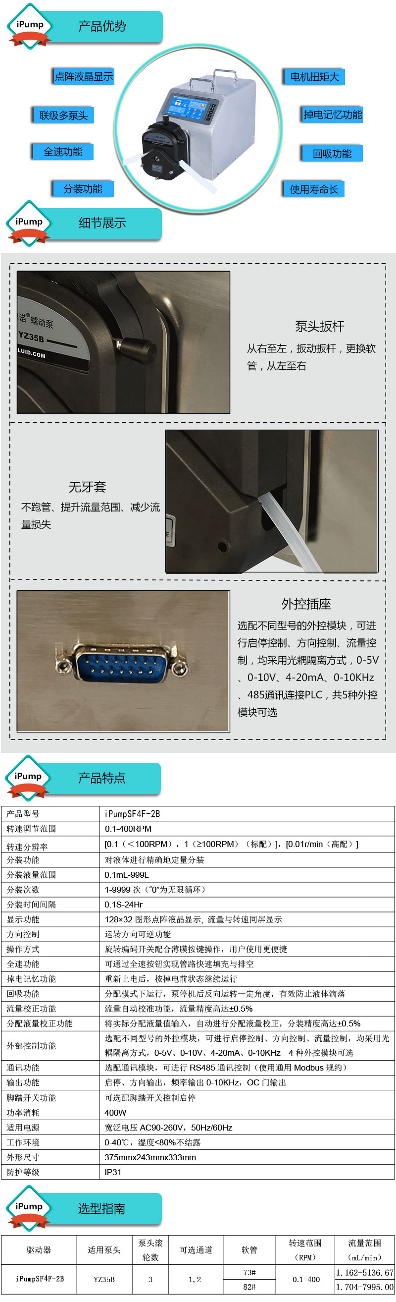 1.流量范圍:1.162-7995mL/min 2.兩種工作模式,流量模式與分配模式可選 3.具有流量校正、分裝液量校正功能 4.分裝精度高達(dá)±0.4%以內(nèi) 5.采用伺服電機(jī)驅(qū)動(dòng),控制準(zhǔn),動(dòng)力強(qiáng)勁 6.線路板全部三防漆處理,防腐、防潮